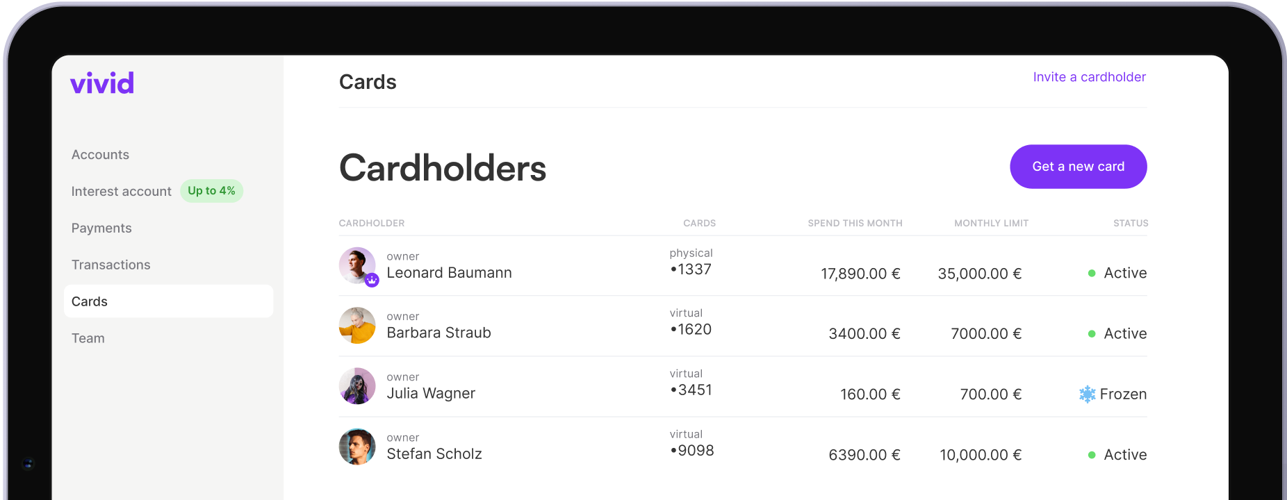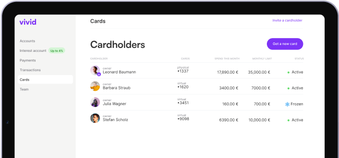 - Zinskonten werden von Vivid Money BV (Teil der Vivid Money Gruppe) angeboten, einem von der niederländischen Finanzmarktaufsichtsbehörde (AFM) zugelassenen Investmentunternehmen.