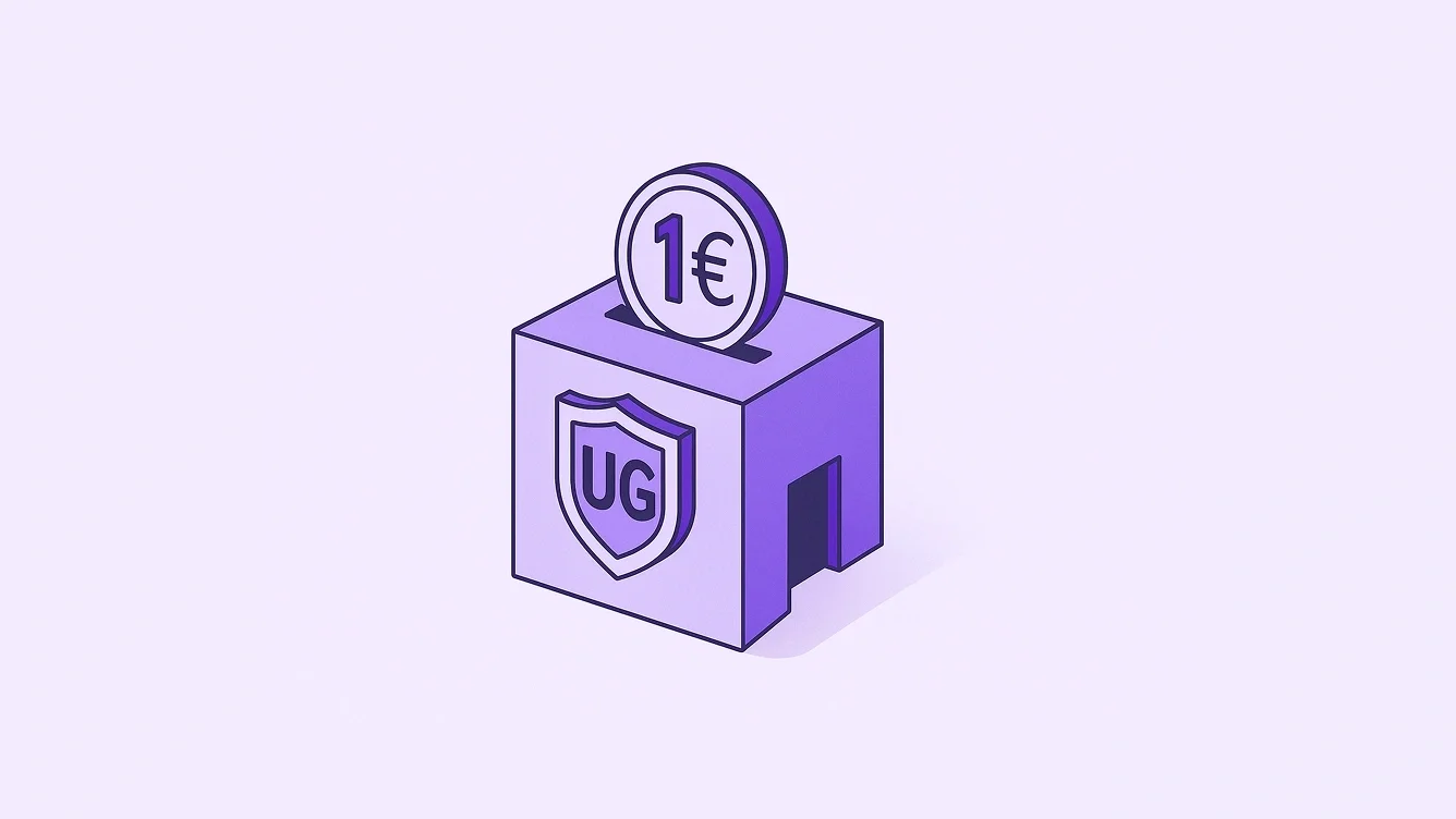 - A minimum share capital of €1 is mandatory, cash payment only. Contributions in kind (such as machinery or property) are not permitted for a UG.